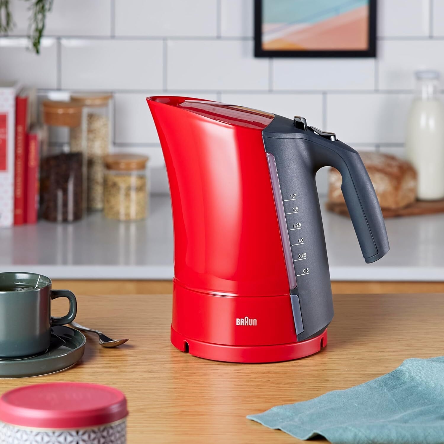 سعة كبيرة: ١٫٧ لتر - مثالية لغلي كمية كافية من الماء الساخن لتحضير الشاي والقهوة والوجبات السريعة للعائلة أو الضيوف.