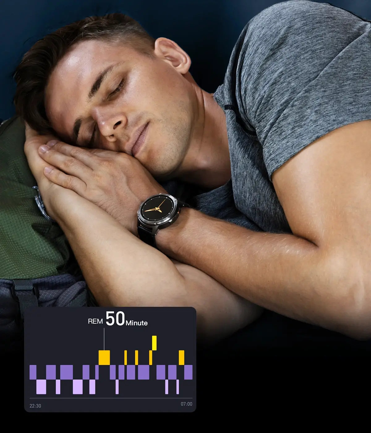 Evaluates your overall sleep quality via in-depth sleep tracking of awake, light sleep, deep sleep, and REM sleep stages.
