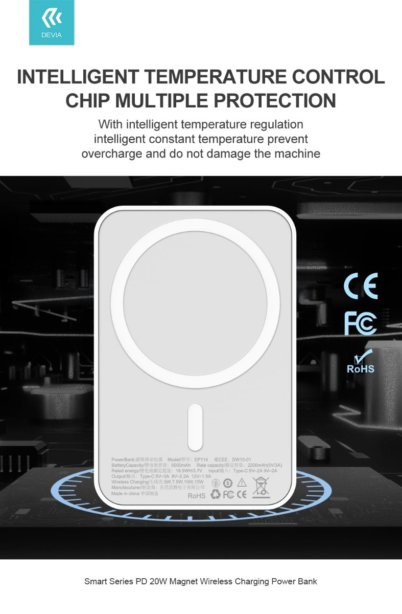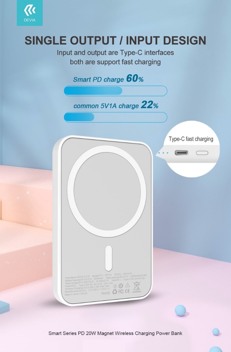 DEVIA EP114 Smart Series PD 20W Magnet Wireless Charging Power Bank 5000mAh