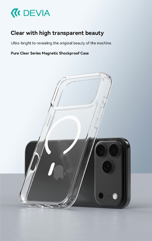 Devia ديفيا Pure جراب ظهرمقاوم للصدمات مغناطيسي لهاتف أيفون 17 برو ماكس - شفاف