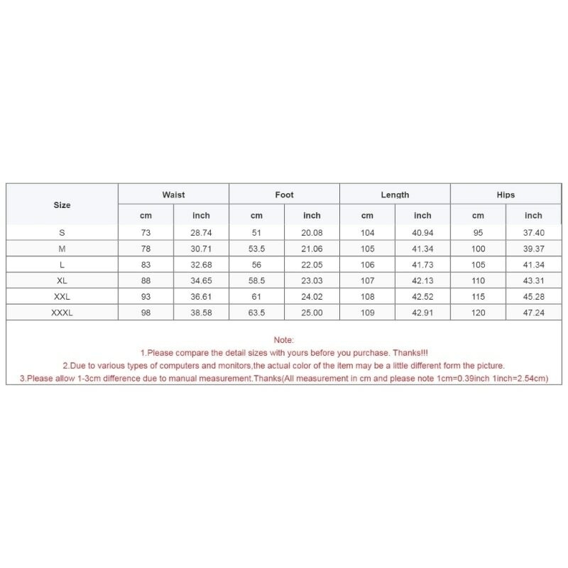 Features: and high quality Women flared trousers is made of corduroy materials, soft, breathable and comfortable to wear. Unique flared leggings design, allow you to move without restriction, effectively helps hide the defects of the calf, and creates the slender appearance. Flared trousers for women is equipped with a high-waist design to trim the waist line and visually elongate the waist ratio. Wear them to the-office with a-blouse and heels, or pair them with a cozy-tops for a weekend brunch-with friend. These pants feature a flattering high waist and subtle-flare that elongates the legs, making them a stylish-and practical addition to any-wardrobe. Specifications: Material: Corduroy Color: Black/Navy/ Red/Khaki-/-Grey Size: for-S/for-M/for-L/XL/XXL/XXXL(Chinese size ,follow the size chart to select please) Size:S Waist:73cm(28.74inch) Foot:51cm(20.08inch) Length:104cm(40.94inch) Hips:95cm(37.40inch) Size: Waist:78cm(30.71inch) Foot:53.5cm(21.06inch) Length:105cm(41.34inch) Hips:100cm(39.37inch) Size:L Waist:83cm(32.68inch) Foot:56cm(22.05inch) Length:cm(41.73inch) Hips:105cm(41.34inch) Size:XL Waist:88cm(34.65inch) Foot:58.5cm(23.03inch) Length:107cm(42.13inch) Hips:110cm(43.31inch) Size:XXL Waist:93cm(36.61inch) Foot:61cm(24.02inch) Length:108cm(42.52inch) Hips:115cm(45.28inch) Size:XXXL Waist:98cm(38.58inch) Foot:63.5cm(25.00inch) Length:109cm(42.91inch) Hips:120cm(47.24inch) Package Includes: 1x Flared Pants Note: Please allow 1-3cm errors due to manual measurement. Due to the difference betweeen different monitors,the pic-may not reflect the actual color of the item.