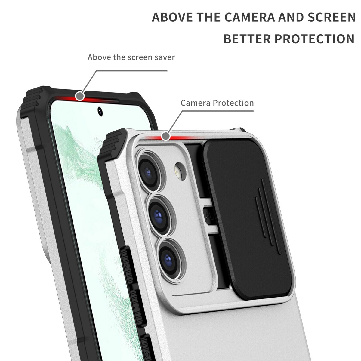 [Upgraded Anti-Scratch Sliding Camera Protection] Delicate camera lens sliding cover, higher than the raised camera protects your phone camera from scratches,collision, scuffs and impact.Unique camera slide cover design to hide the camera perfectly, which not only increases safety but also has a sense of technology.Preventing from the disclosure of our privacy. You can slide it freely.
