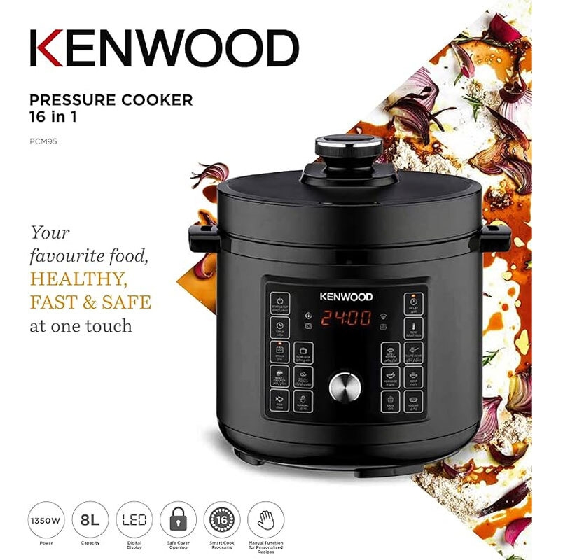Kenwood كينوود حلة ضغط كهربائية 16 في 1 متعددة الوظائف سعة 8 لتر 1300 وات - أسود - PCM95.000BK