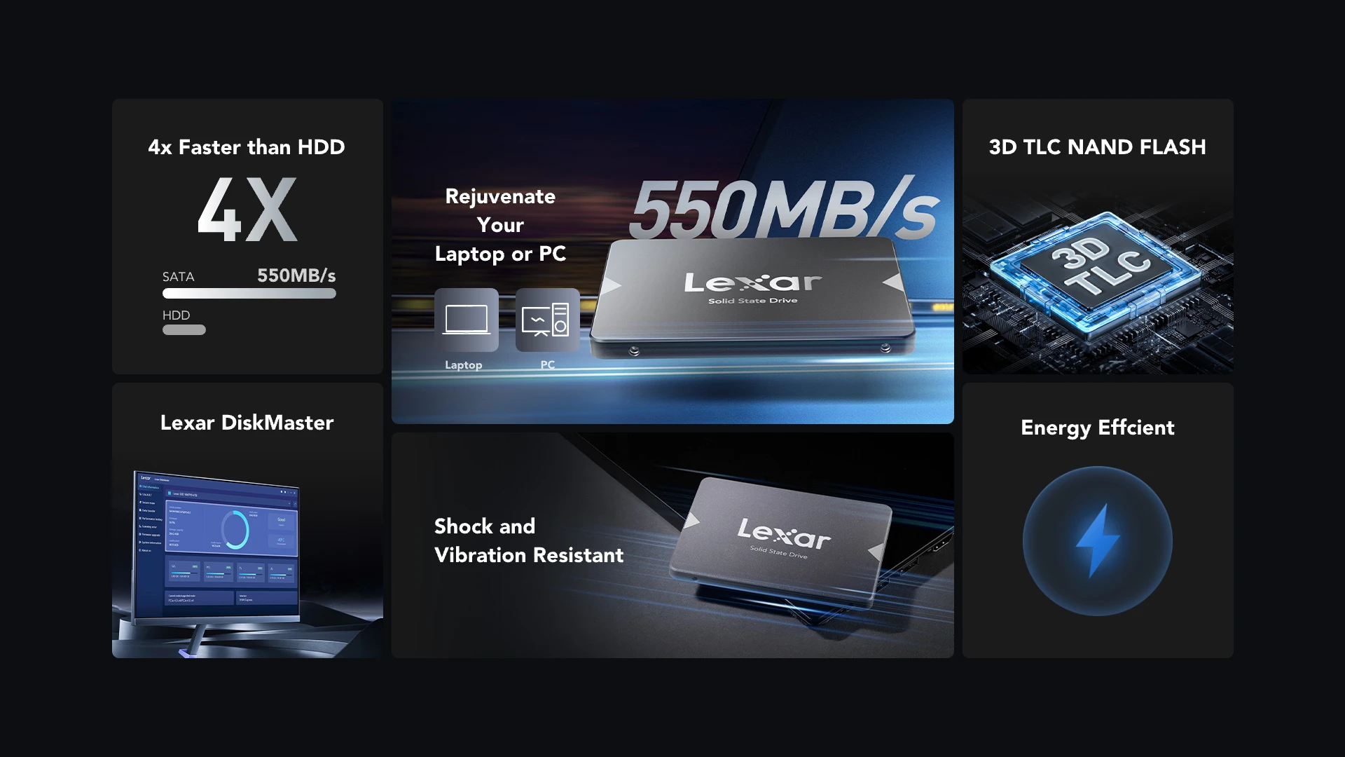 • Lexar® NS100 2.5” SATA III (6Gb/s) SSD