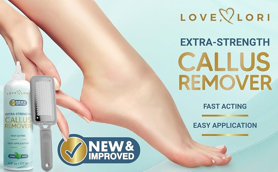 مجموعة مقشر القدمين لإزالة الجلد الميت - جدد قدميك مع لاف لوري، مجموعة العناية الكاملة بالقدمين. تحتوي هذه المجموعة على جل مزيل للكالو (177 مل) ومبرد قدم مزدوج المفعول لمعالجة البشرة الخشنة والجافة والمتصلبة بفعالية، مما يمنح قدميك نعومةً وتجددًا