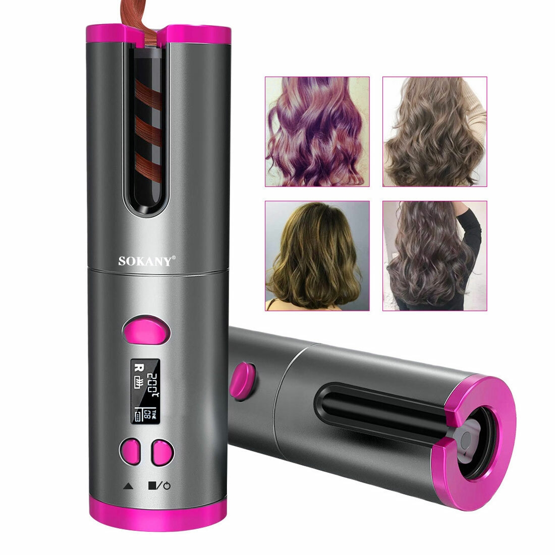 Sokany جهاز تجعيد الشعر كيرلي اللاسلكي يو اس بي - فضي