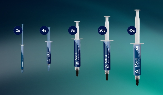 ARCTIC MX-4 is available in sizes ranging from 2 to 45 grams. Resealable packaging prevents the paste from drying out.