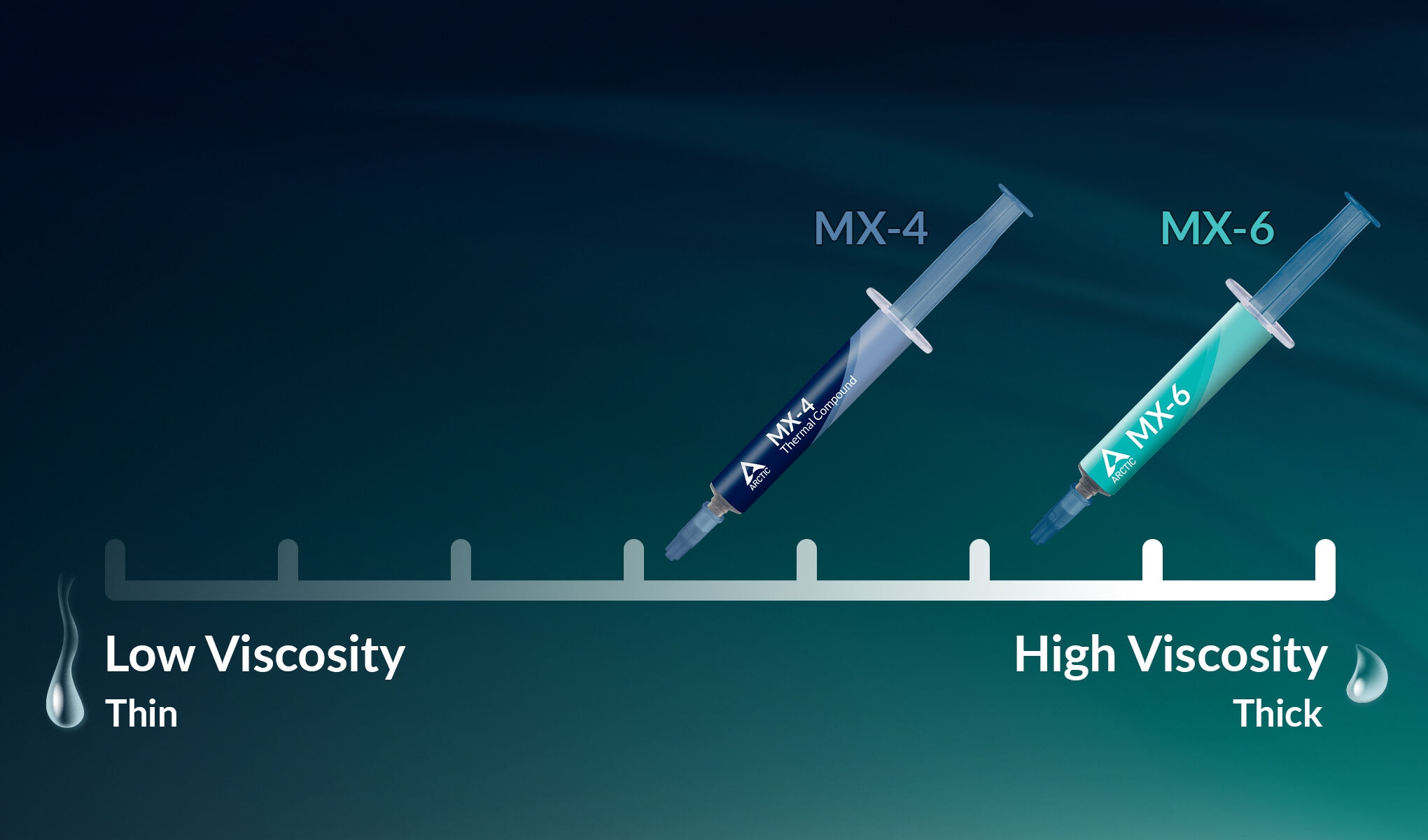 Depending on personal preference and area of application, a thinner or thicker thermal compound may be preferred. Excellent non-drying and non-bleeding properties ensure constant long-term performance. With ARCTIC thermal pastes you will find the optimal viscosity for your application.