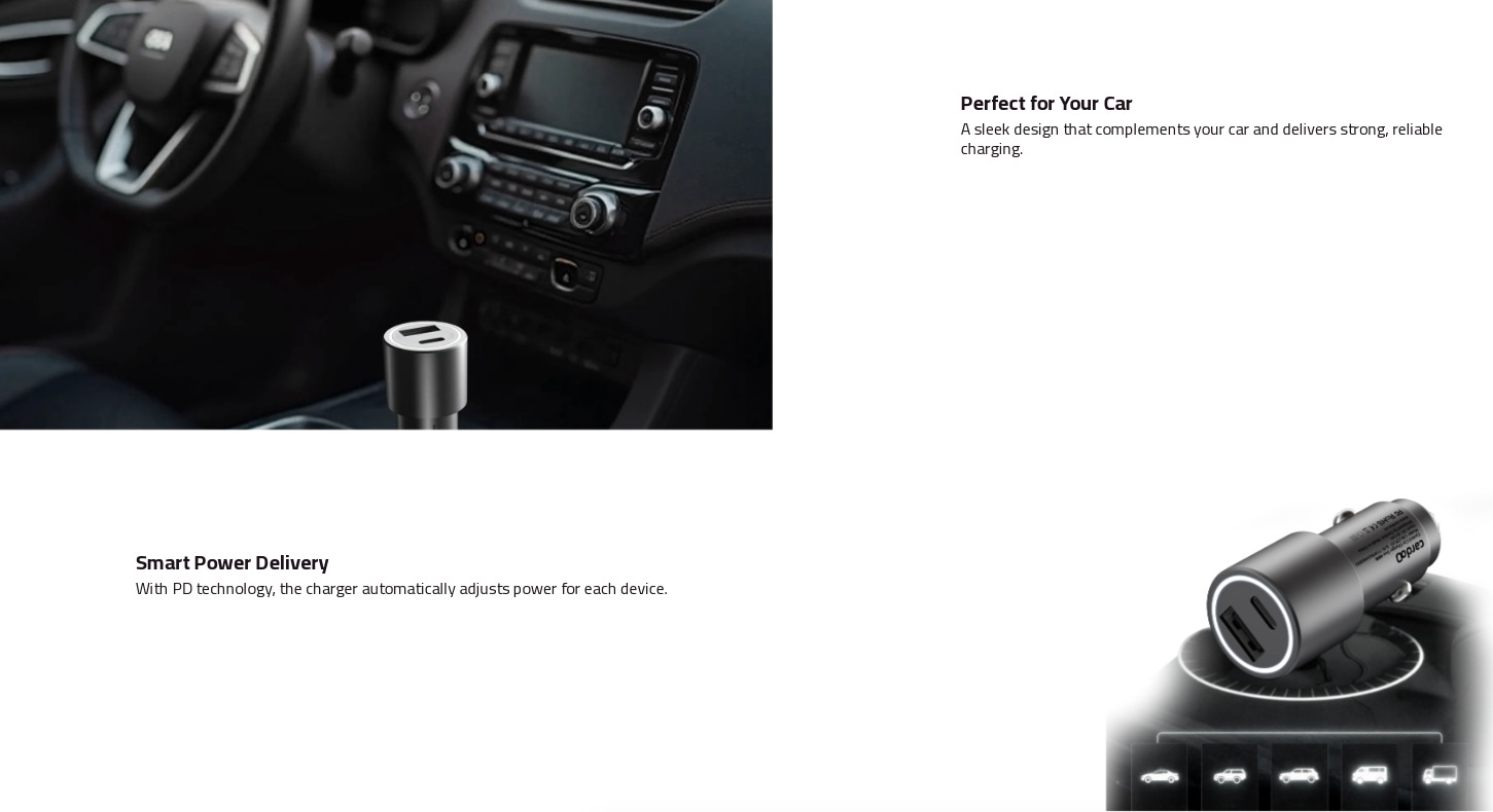 Form Factor: Compact in-car plug with LED indicator