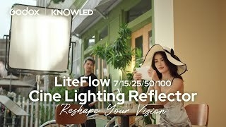 The KNOWLED LiteFlow system is a unique solution to create indirect light. While other similar reflectors have been used for years, Godox's cutting-edge reflection system accurately guides the light source to your desired positions. Made to cover a variety of environments and applications, the LiteFlow reflectors sport different diffusion levels, ranging from a hard to a soft strip ray of light.