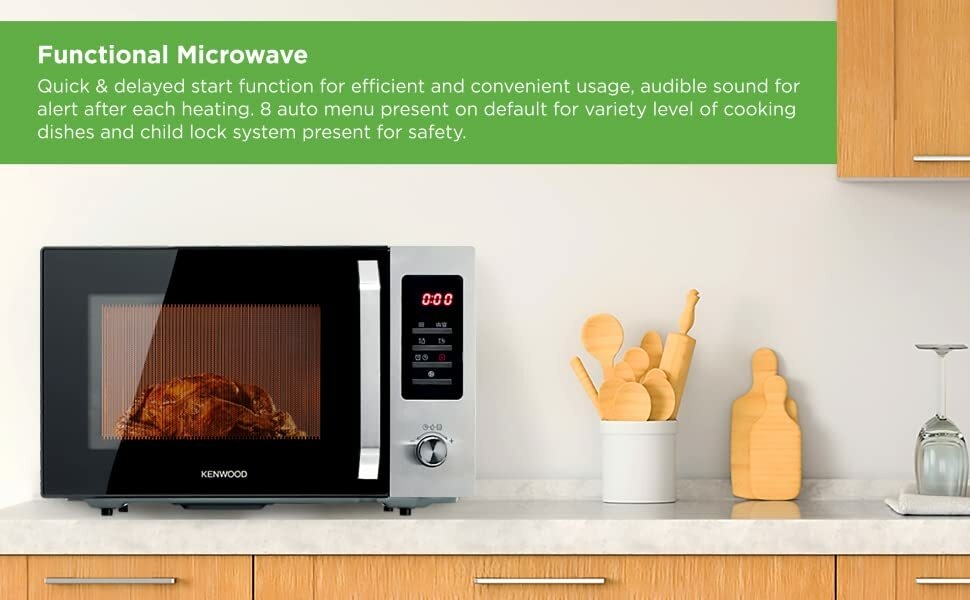Kenwood 30L microwave oven with grill, digital display, 5 power levels, defrost function, auto menu, 95 minutes timer, clock function 1000W MWM30.000BK black/silver - (international warranty)