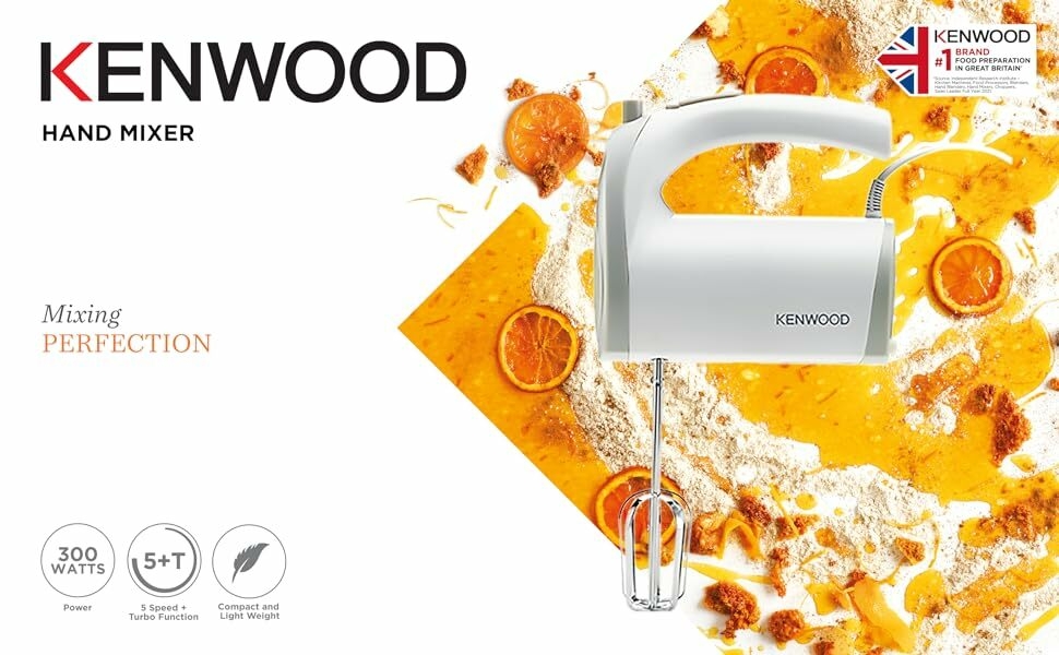 Kenwood  Hand Mixer Electric Whisk 300W with 5 Speeds  HMP20.000WH White
