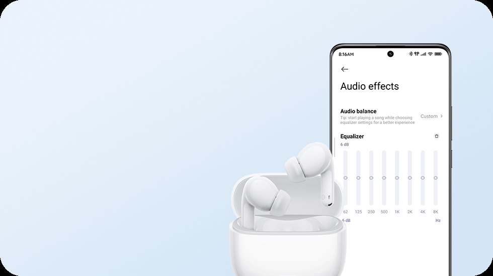 Download the Xiaomi Earbuds app to unlock more personalized features. Adjust noise-cancellation modes to suit different scenarios, use the equalizer to match your preferred sound profile and customize touch gestures for more intuitive control. The app also supports firmware updates to continuously optimize your experience.