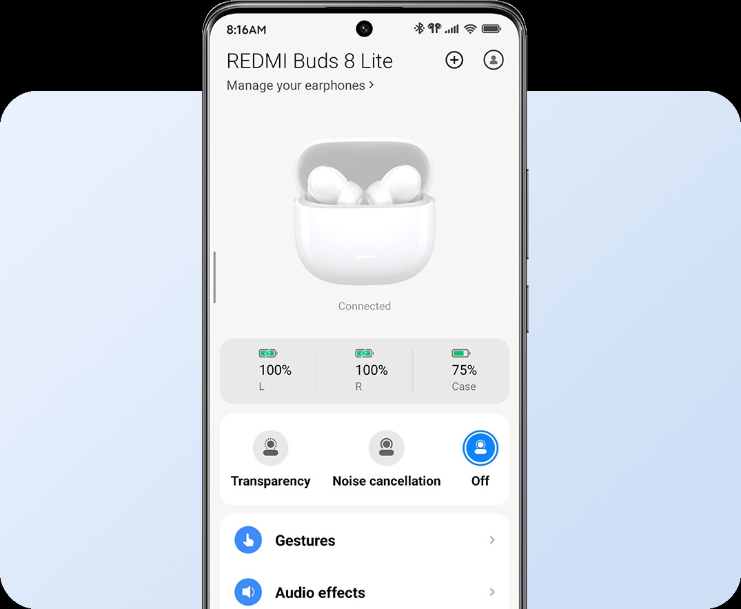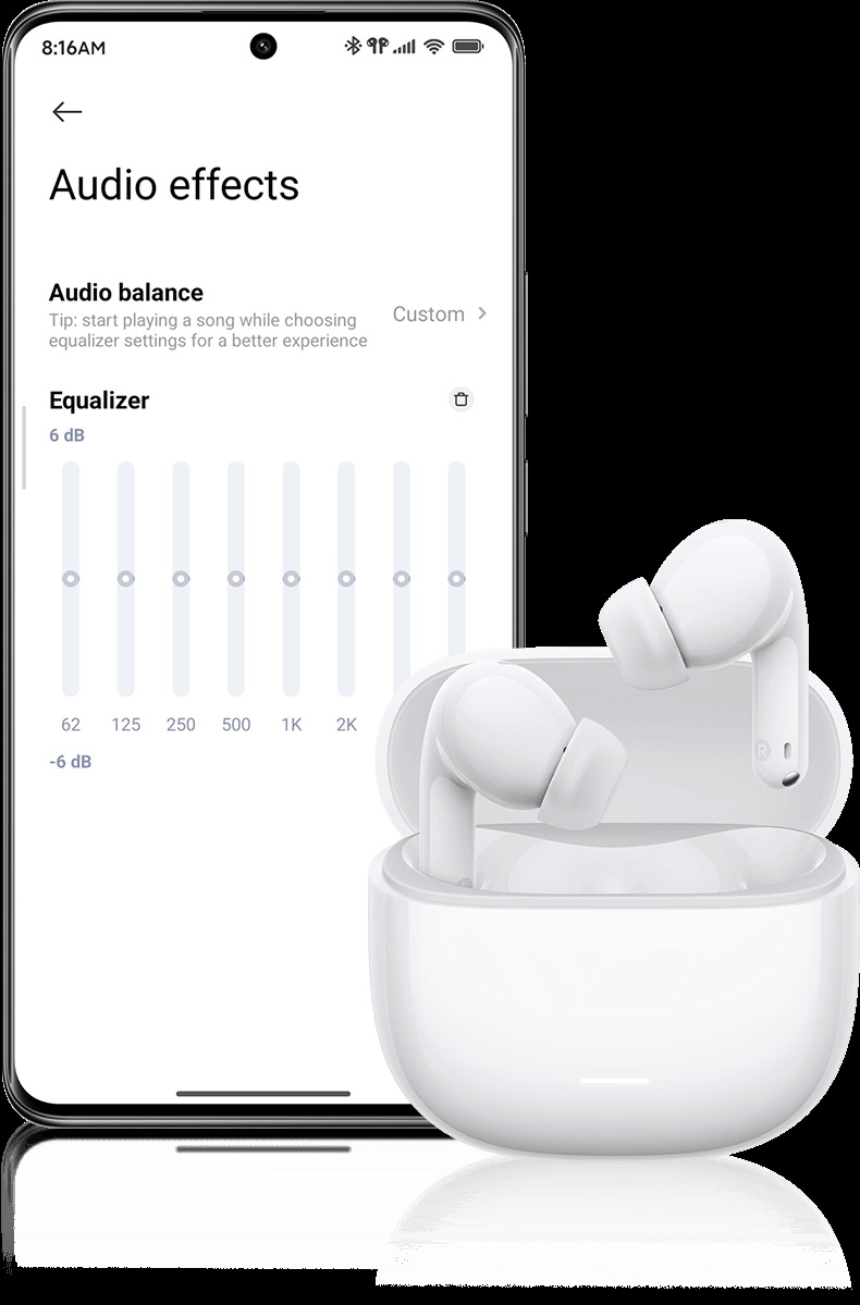 Download the Xiaomi Earbuds app to unlock more personalized features. Adjust noise-cancellation modes to suit different scenarios, use the equalizer to match your preferred sound profile and customize touch gestures for more intuitive control. The app also supports firmware updates to continuously optimize your experience.